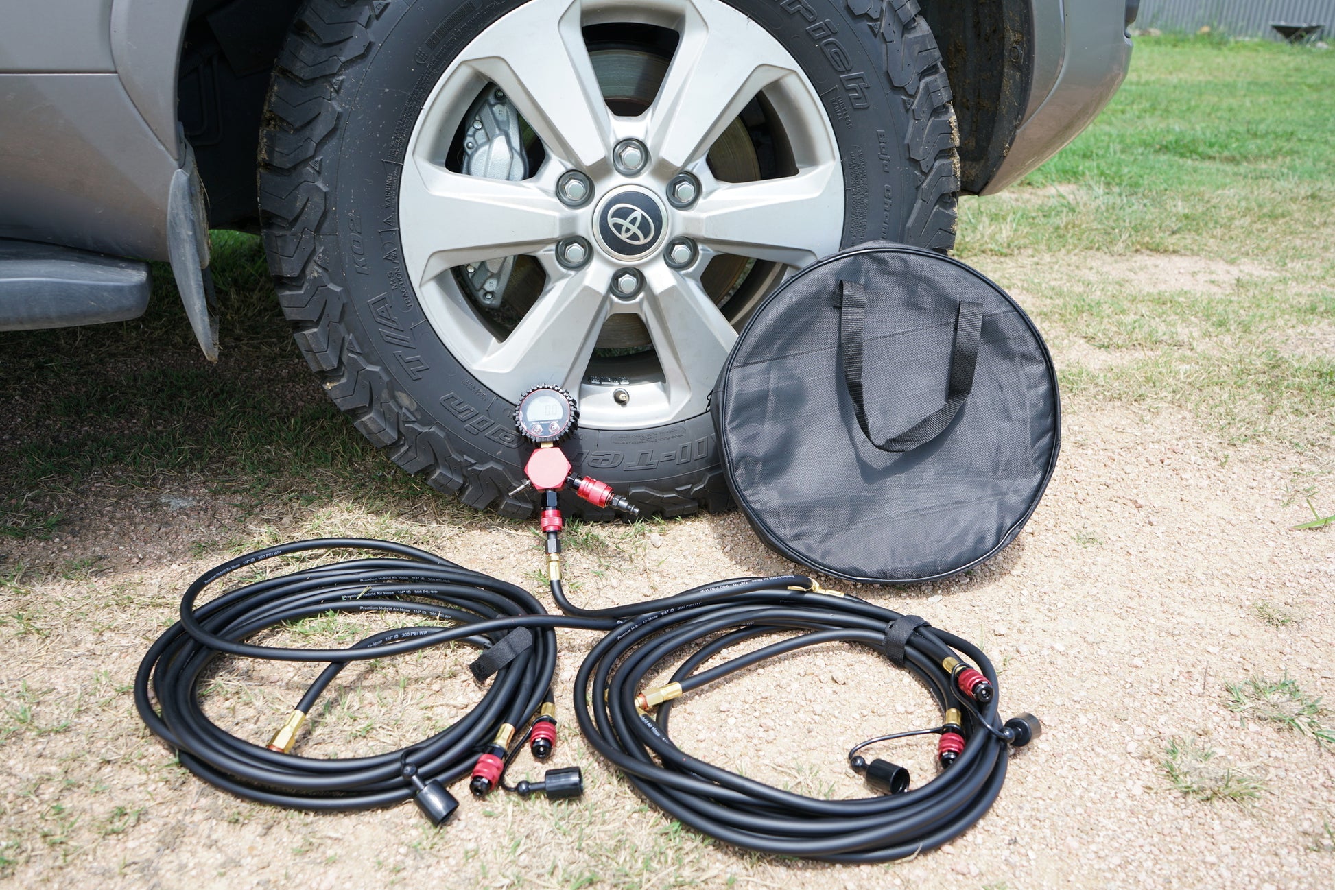 If your tired of bending down to deflate or just check the individual air pressure in your tyres you will be ecstatic to learn that this great bit of gear will save your knees and your back from that tiring task. The EQUALISE is simple to use and once you have quickly clipped on the hose fitting to your tyres you no longer need to stay bending down you can now stand comfortably and check your tyre pressure and deflate or inflate your tyre using the EQUALISER manifold controller. Whether you are connected too two tyres or all four the air pressure in those tyres will be equalised and now be the same in each tyre. Providing your vehicle with greater stability and saving unnecessary wear on your tyres.