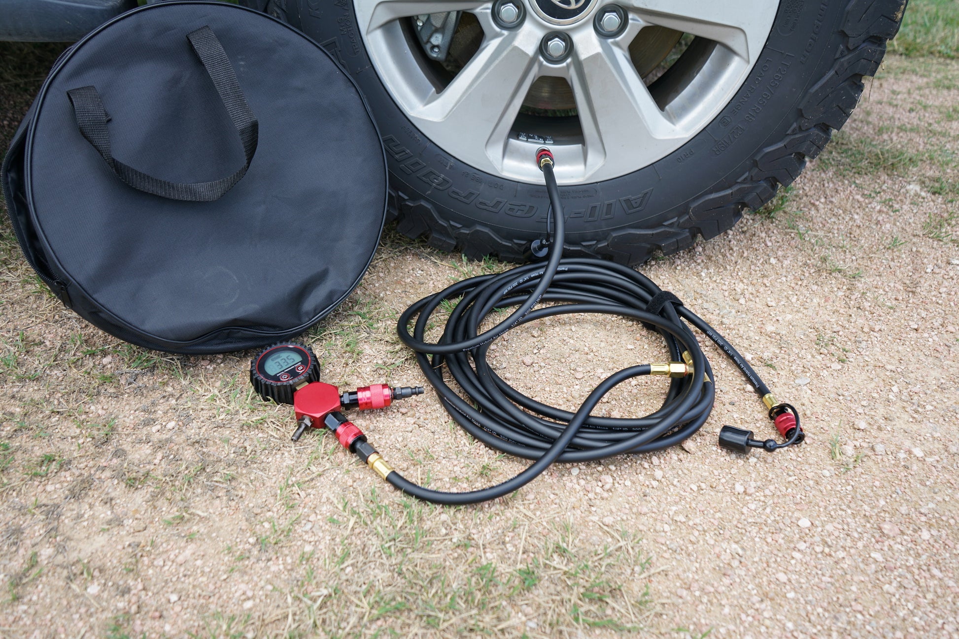 If your tired of bending down to deflate or just check the individual air pressure in your tyres you will be ecstatic to learn that this great bit of gear will save your knees and your back from that tiring task. The EQUALISE is simple to use and once you have quickly clipped on the hose fitting to your tyres you no longer need to stay bending down you can now stand comfortably and check your tyre pressure and deflate or inflate your tyre using the EQUALISER manifold controller. Whether you are connected too two tyres or all four the air pressure in those tyres will be equalised and now be the same in each tyre. Providing your vehicle with greater stability and saving unnecessary wear on your tyres.